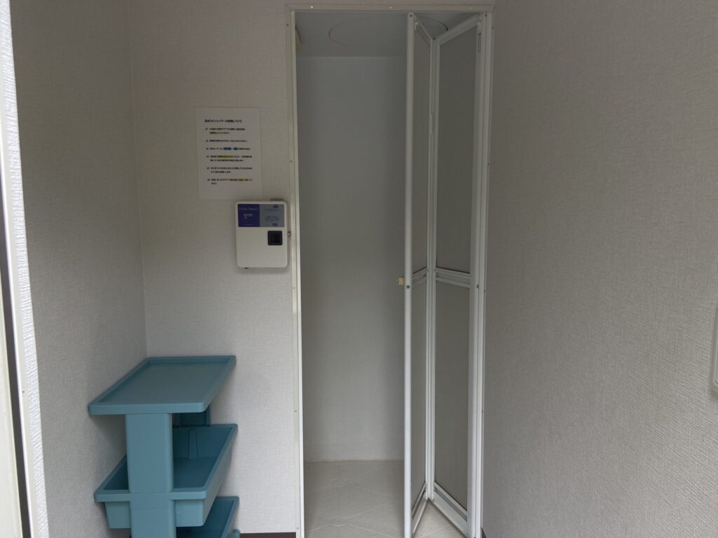 とても綺麗でタオルなどもおける棚も設置されていました。